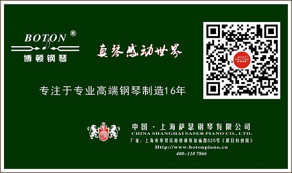 BOTON(博頓)鋼琴自2003年進入中國市場以來,特約授權上海薩瑟鋼琴有限公司為國內唯一生產供貨商。16年來始終堅持“真琴感動世界,品質鑄造品牌”的品牌戰略。和“專業專注,精益求精;競爭品質,服務愛心”的經營理念。絕不參與行業泛濫的互聯網品牌造假;不搞百度“競價排名”;不搞國產配件海運東南亞落后國家簡易拼裝再返的“洗澡式”“原裝進口”。BOTON(博頓)鋼琴高瞻遠矚,求真務實,以高度的品牌使命感和社會責任感為己任,有底線,有擔當。為廣大用戶只提供高品質專業鋼琴。品質承諾:質保三十年,實施召回制,并在官網和微信公眾平臺公示具人性化可操作體細則。特設全國統一監督、服務、投訴專線:400-110 7866.