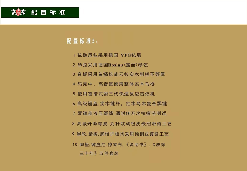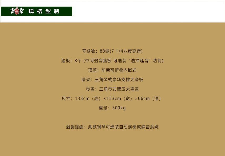 為了使您能夠了解您和我們之間就有關產品責任和售后服務方面權利、義務產生和消除的約定,請您在使用前務必認真研讀本產品使用維護說明書和質量擔保承諾。任何不當的使用和操作都可能影響鋼琴使用壽命、發音、音量、音色、和彈奏指觸感覺;同時也將使你喪失提出索賠的權利。