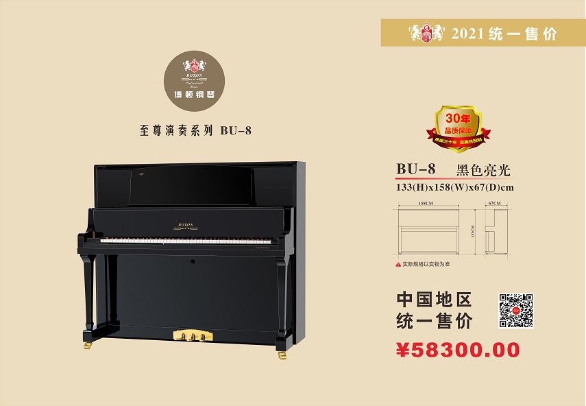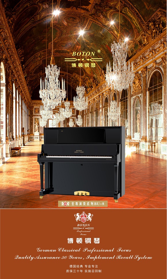 尊敬的用戶,熱烈歡迎您已成為BOTON(博頓)鋼琴用戶大家庭中的一員,祝賀您以睿智的目光選擇了我們的產品,我們將為您提供卓越的品質和一流的服務。BOTON鋼琴從在中國大陸注冊成立生產十五年以來,在各項技術指標和制作工藝上都嚴格按照德國鋼琴工藝標準生產制造,迄今為止已在生產和銷售方面有了長足的發展,特別是在產品質量上多項指標已遠遠超過中國樂器行業國家標準和同行水平。現已被作為上海音樂學院國際鋼琴大師班演奏用琴;西安音樂學院鋼琴系,新疆師范大學音樂學院,上海交響樂團、合唱團演奏用琴;美國奧柏林國際鋼琴大賽中國賽區指定用琴;上海國際書展專家指定演示用琴;上海浦東國際機場T2航站樓迎賓大廳形象展示指定用琴;廈門高崎國際機場迎賓大廳形象展示用情等。在銷售商和消費者心目中已經建立起了良好的品質形象和信譽,品牌效應也日見彰顯。為了酬謝廣大BOTON用戶的厚愛,確保BOTON鋼琴的恒久卓越,我們特聯合特約經銷商向BOTON用戶提供:1、電話定時回訪;2、上門跟蹤服務;3、特設咨詢和監督投訴專線電話;4、對產品品質的保障管理切實實行“質保30年實施召回制”。