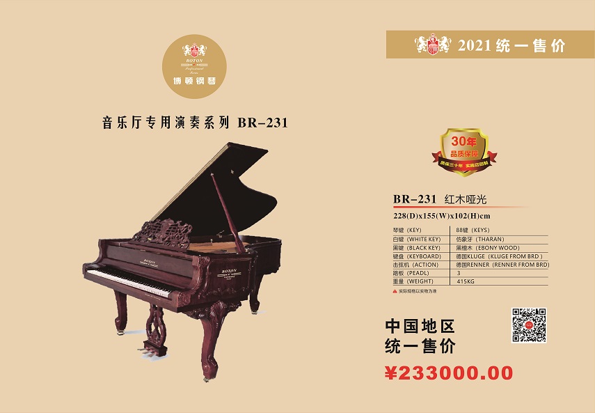 尊敬的用戶,熱烈歡迎您已成為BOTON(博頓)鋼琴用戶大家庭中的一員,祝賀您以睿智的目光選擇了我們的產品,我們將為您提供卓越的品質和一流的服務。BOTON鋼琴從在中國大陸注冊成立生產十五年以來,在各項技術指標和制作工藝上都嚴格按照德國鋼琴工藝標準生產制造,迄今為止已在生產和銷售方面有了長足的發展,特別是在產品質量上多項指標已遠遠超過中國樂器行業國家標準和同行水平。現已被作為上海音樂學院國際鋼琴大師班演奏用琴;西安音樂學院鋼琴系,新疆師范大學音樂學院,上海交響樂團、合唱團演奏用琴;美國奧柏林國際鋼琴大賽中國賽區指定用琴;上海國際書展專家指定演示用琴;上海浦東國際機場T2航站樓迎賓大廳形象展示指定用琴;廈門高崎國際機場迎賓大廳形象展示用情等。在銷售商和消費者心目中已經建立起了良好的品質形象和信譽,品牌效應也日見彰顯。為了酬謝廣大BOTON用戶的厚愛,確保BOTON鋼琴的恒久卓越,我們特聯合特約經銷商向BOTON用戶提供:1、電話定時回訪;2、上門跟蹤服務;3、特設咨詢和監督投訴專線電話;4、對產品品質的保障管理切實實行“質保30年實施召回制”。