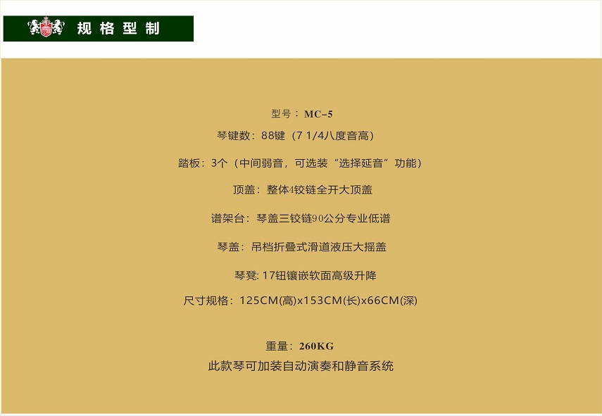 為了使您能夠更加詳盡全面了解鋼琴的性能、特征和使用、保養等注意事項,也了解您和我們之間就有關產品責任和售后服務方面權利、義務產生和消除的約定,請您在使用前務必認真研讀本產品使用維護說明書和質量擔保承諾。任何不當的使用和操作都可能影響鋼琴使用壽命、發音、音量、音色、和彈奏指觸感覺;同時也將使你喪失提出索賠的權利。