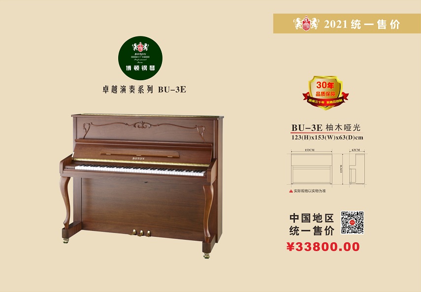 尊敬的用戶,熱烈歡迎您已成為BOTON(博頓)鋼琴用戶大家庭中的一員,祝賀您以睿智的目光選擇了我們的產(chǎn)品,我們將為您提供卓越的品質(zhì)和一流的服務(wù)。BOTON鋼琴從在中國大陸注冊成立生產(chǎn)十五年以來,在各項技術(shù)指標和制作工藝上都嚴格按照德國鋼琴工藝標準生產(chǎn)制造,迄今為止已在生產(chǎn)和銷售方面有了長足的發(fā)展,特別是在產(chǎn)品質(zhì)量上多項指標已遠遠超過中國樂器行業(yè)國家標準和同行水平。現(xiàn)已被作為上海音樂學(xué)院國際鋼琴大師班演奏用琴;西安音樂學(xué)院鋼琴系,新疆師范大學(xué)音樂學(xué)院,上海交響樂團、合唱團演奏用琴;美國奧柏林國際鋼琴大賽中國賽區(qū)指定用琴;上海國際書展專家指定演示用琴;上海浦東國際機場T2航站樓迎賓大廳形象展示指定用琴;廈門高崎國際機場迎賓大廳形象展示用情等。在銷售商和消費者心目中已經(jīng)建立起了良好的品質(zhì)形象和信譽,品牌效應(yīng)也日見彰顯。為了酬謝廣大BOTON用戶的厚愛,確保BOTON鋼琴的恒久卓越,我們特聯(lián)合特約經(jīng)銷商向BOTON用戶提供:1、電話定時回訪;2、上門跟蹤服務(wù);3、特設(shè)咨詢和監(jiān)督投訴專線電話;4、對產(chǎn)品品質(zhì)的保障管理切實實行“質(zhì)保30年實施召回制”。