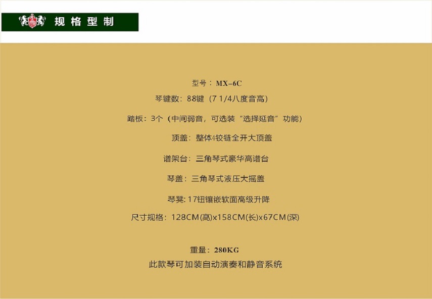 為了使您能夠更加詳盡全面了解鋼琴的性能、特征和使用、保養等注意事項,也了解您和我們之間就有關產品責任和售后服務方面權利、義務產生和消除的約定,請您在使用前務必認真研讀本產品使用維護說明書和質量擔保承諾。任何不當的使用和操作都可能影響鋼琴使用壽命、發音、音量、音色、和彈奏指觸感覺;同時也將使你喪失提出索賠的權利。