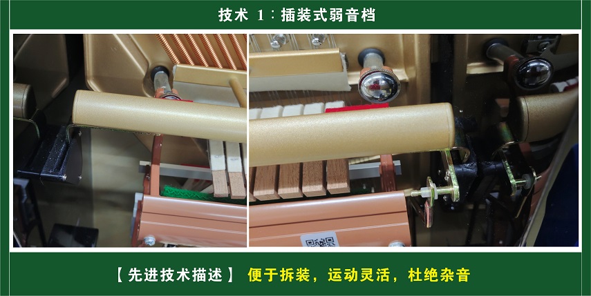 全數控一次成型弦軸板;BOTON(博頓)鋼琴采取三種機制確保鋼琴音高準確,音律穩定,①選材使用優質多層合成弦軸板,抵消木材熱脹冷縮及濕潮引發弦軸孔徑變化。②全數控一次成型開孔確保孔徑垂直仰角由低到高音區準確控制在6-4度,從力矩原理上保障弦軸張力和穩定。③使用專利產品多螺紋合金材料弦軸銷確保弦軸扭力穩固不松動。