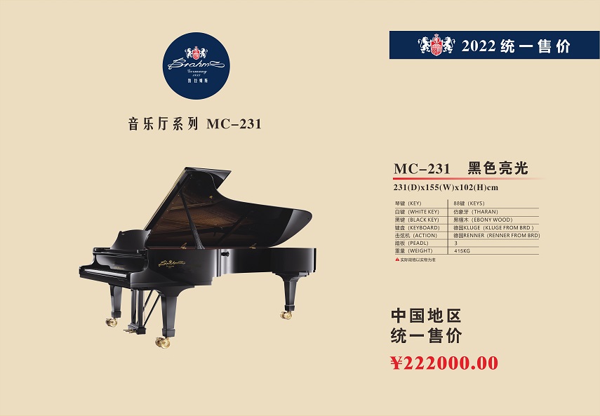 尊敬的用戶,熱烈歡迎您已成為勃拉姆斯 Brahms 鋼琴用戶大家庭中的一員,祝賀您以睿智的目光選擇了我們的產品,我們將為您提供卓越的品質和一流的服務。Brahms 鋼琴從進入中國大陸20年以來,在各項技術指標和制作工藝上都嚴格按照德國鋼琴工藝標準生產制造,迄今為止已在生產和銷售方面有了長足的發展,特別是在產品質量上多項指標已遠遠超過中國樂器行業國家標準和同行水平。現已被作為上海音樂學院國際鋼琴大師班演奏用琴;美國奧柏林國際鋼琴大賽中國賽區指定用琴;上海國際書展專家指定演示用琴;上海浦東國際機場T2航站樓迎賓大廳形象展示指定用琴;廈門高崎國際機場迎賓大廳形象展示用情等。在銷售商和消費者心目中已經建立起了良好的品質形象和信譽,品牌效應也日見彰顯。為了酬謝廣大Brahms 用戶的厚愛,確保Brahms 鋼琴的恒久卓越,我們特聯合特約經銷商向 Brahms 用戶提供:1、電話定時回訪;2、上門跟蹤服務;3、特設咨詢和監督投訴專線電話;4、對產品品質的保障管理切實實行 “質保30年,實施召回制”。