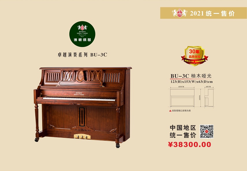 尊敬的用戶,熱烈歡迎您已成為BOTON(博頓)鋼琴用戶大家庭中的一員,祝賀您以睿智的目光選擇了我們的產品,我們將為您提供卓越的品質和一流的服務。BOTON鋼琴從在中國大陸注冊成立生產十五年以來,在各項技術指標和制作工藝上都嚴格按照德國鋼琴工藝標準生產制造,迄今為止已在生產和銷售方面有了長足的發展,特別是在產品質量上多項指標已遠遠超過中國樂器行業國家標準和同行水平?,F已被作為上海音樂學院國際鋼琴大師班演奏用琴;西安音樂學院鋼琴系,新疆師范大學音樂學院,上海交響樂團、合唱團演奏用琴;美國奧柏林國際鋼琴大賽中國賽區指定用琴;上海國際書展專家指定演示用琴;上海浦東國際機場T2航站樓迎賓大廳形象展示指定用琴;廈門高崎國際機場迎賓大廳形象展示用情等。在銷售商和消費者心目中已經建立起了良好的品質形象和信譽,品牌效應也日見彰顯。為了酬謝廣大BOTON用戶的厚愛,確保BOTON鋼琴的恒久卓越,我們特聯合特約經銷商向BOTON用戶提供:1、電話定時回訪;2、上門跟蹤服務;3、特設咨詢和監督投訴專線電話;4、對產品品質的保障管理切實實行“質保30年實施召回制”。