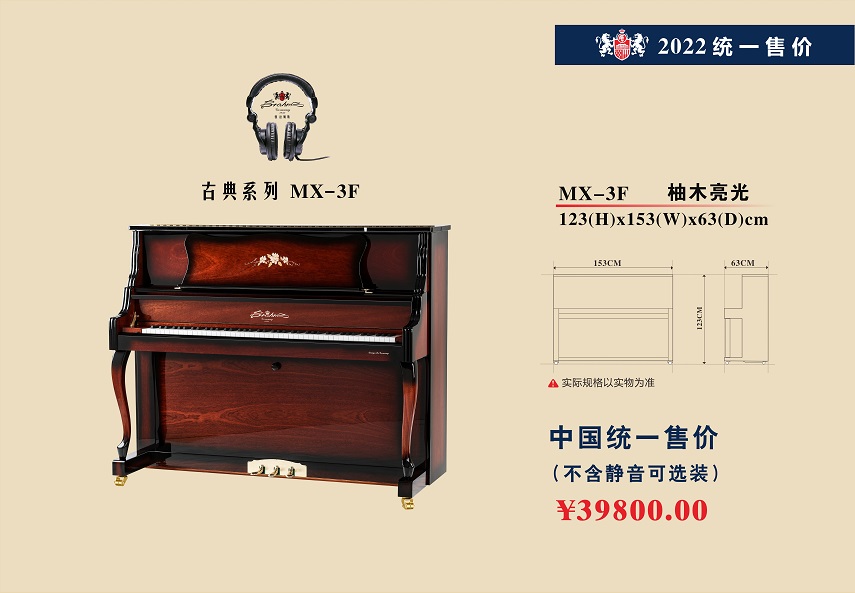 尊敬的用戶,熱烈歡迎您已成為勃拉姆斯 Brahms 鋼琴用戶大家庭中的一員,祝賀您以睿智的目光選擇了我們的產品,我們將為您提供卓越的品質和一流的服務。Brahms 鋼琴從進入中國大陸20年以來,在各項技術指標和制作工藝上都嚴格按照德國鋼琴工藝標準生產制造,迄今為止已在生產和銷售方面有了長足的發展,特別是在產品質量上多項指標已遠遠超過中國樂器行業國家標準和同行水平。現已被作為上海音樂學院國際鋼琴大師班演奏用琴;美國奧柏林國際鋼琴大賽中國賽區指定用琴;上海國際書展專家指定演示用琴;上海浦東國際機場T2航站樓迎賓大廳形象展示指定用琴;廈門高崎國際機場迎賓大廳形象展示用情等。在銷售商和消費者心目中已經建立起了良好的品質形象和信譽,品牌效應也日見彰顯。為了酬謝廣大Brahms 用戶的厚愛,確保Brahms 鋼琴的恒久卓越,我們特聯合特約經銷商向 Brahms 用戶提供:1、電話定時回訪;2、上門跟蹤服務;3、特設咨詢和監督投訴專線電話;4、對產品品質的保障管理切實實行 “質保30年,實施召回制”。